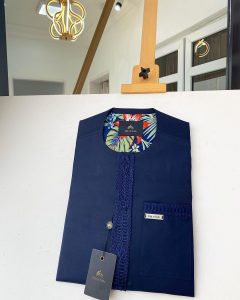Shop Navy blue embroidery kaftan with matching patch pocket design in Lagos Nigeria Canada, United States, Europe, Shop, buy, latest design