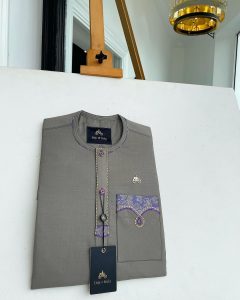 Buy Fossil Grey, mixed purple Swarovski buttons kaftan . Lagos, Nigeria Canada, United States, Europe, Shop, buy, latest design