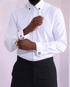 Buy White black eye-eyelet & double cuff shirt in Lagos, Nigeria, Africa, New York, Texas, United Kingdom, USA, Wedding Style