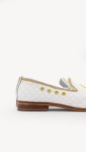 Shop an ivory white jacquard – DKLF 08 by Deji & Kola. Black velvet with gold floral accents, handcrafted in Nigeria for weddings and special occasions.