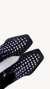 Shop a blue velvet Chelsea boot – the DKBT 03 by Deji & Kola. Featuring squared toes, silver branded studs and a side zipper. Perfect for parties and special occasions.