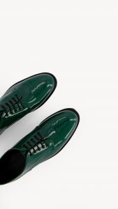 Buy Green velvet lace-up shoe – DKDB 06. Made from green patent leather in Nigeria, this comfortable low-heeled derby is perfect for work, events, or everyday wear.
