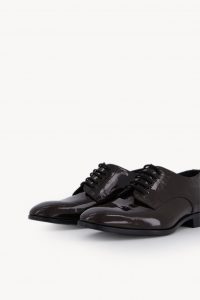 Buy DK Monogram Derby brings Buy a Brown lace-up shoe – DKDB 07. Made from brown patent leather in Nigeria, this comfortable low-heeled derby is perfect for work, events, or everyday wear.