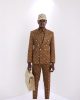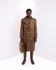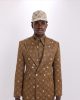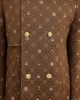 The UC3-LK 5 Monogram Trench Coat is crafted from rich brown canvas denim with our signature circular monogram logo. It features a wide lapel , double-breasted closure, and a structured, long silhouette. It is finished by branded Deji and Kola buttons and gold bar on the wrist. This coat is perfect as the ultimate final layer for creative, professional, or high-fashion events.
