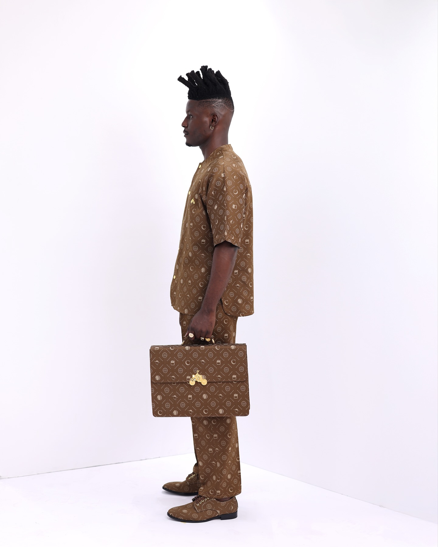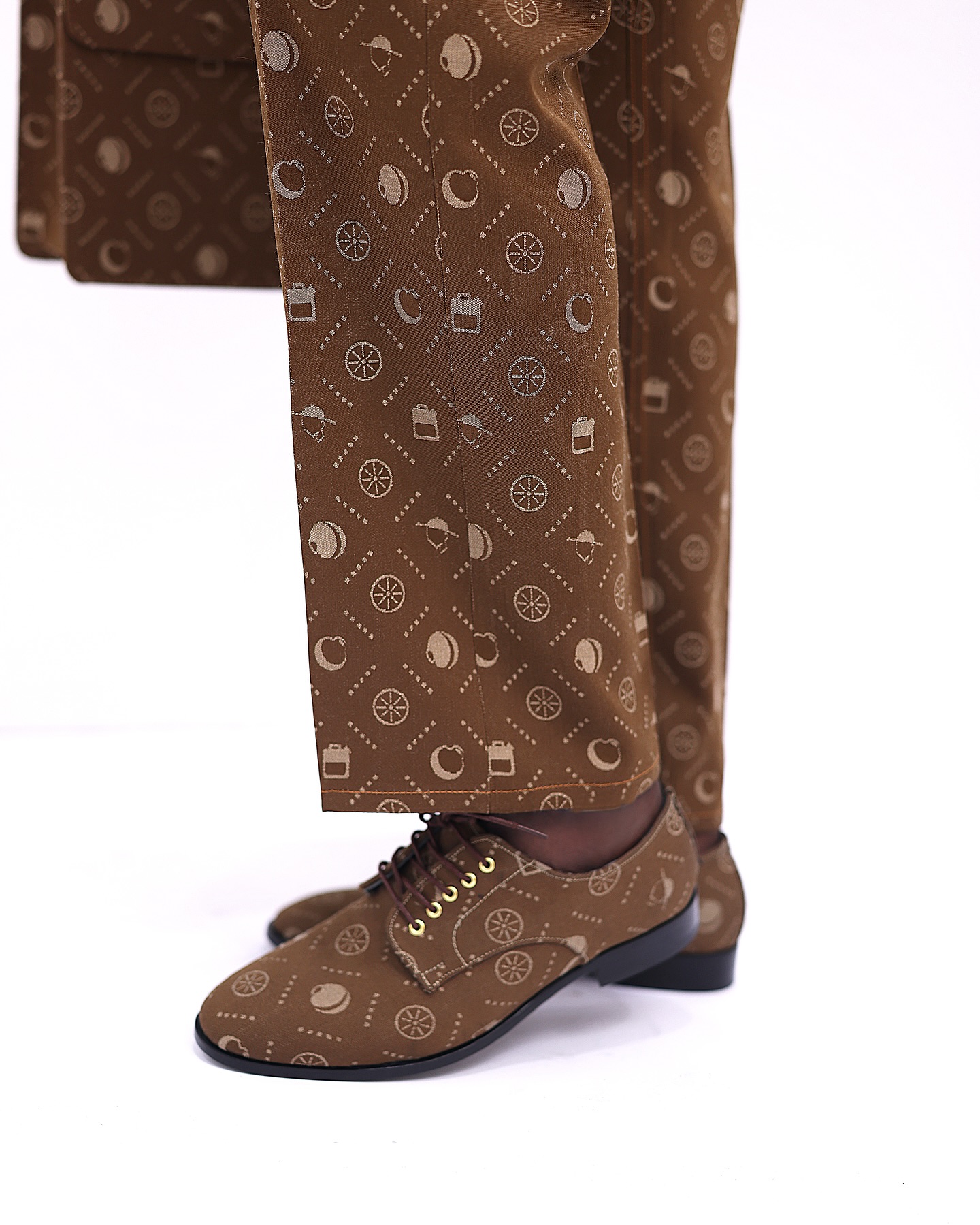 The UC3-LK 4 Monogram Trouser is crafted from the same rich brown canvas denim as the shirt, featuring our signature circular monogram logo. These trousers are Cut in a classic straight-leg fit, maintaining a sharp, clean line from the hip to the ankle. Whether worn as part of the full coordinated set or paired with a solid top, these trousers are a versatile foundation piece, suitable for semi-formal settings, creative business environments, or elevated everyday style.