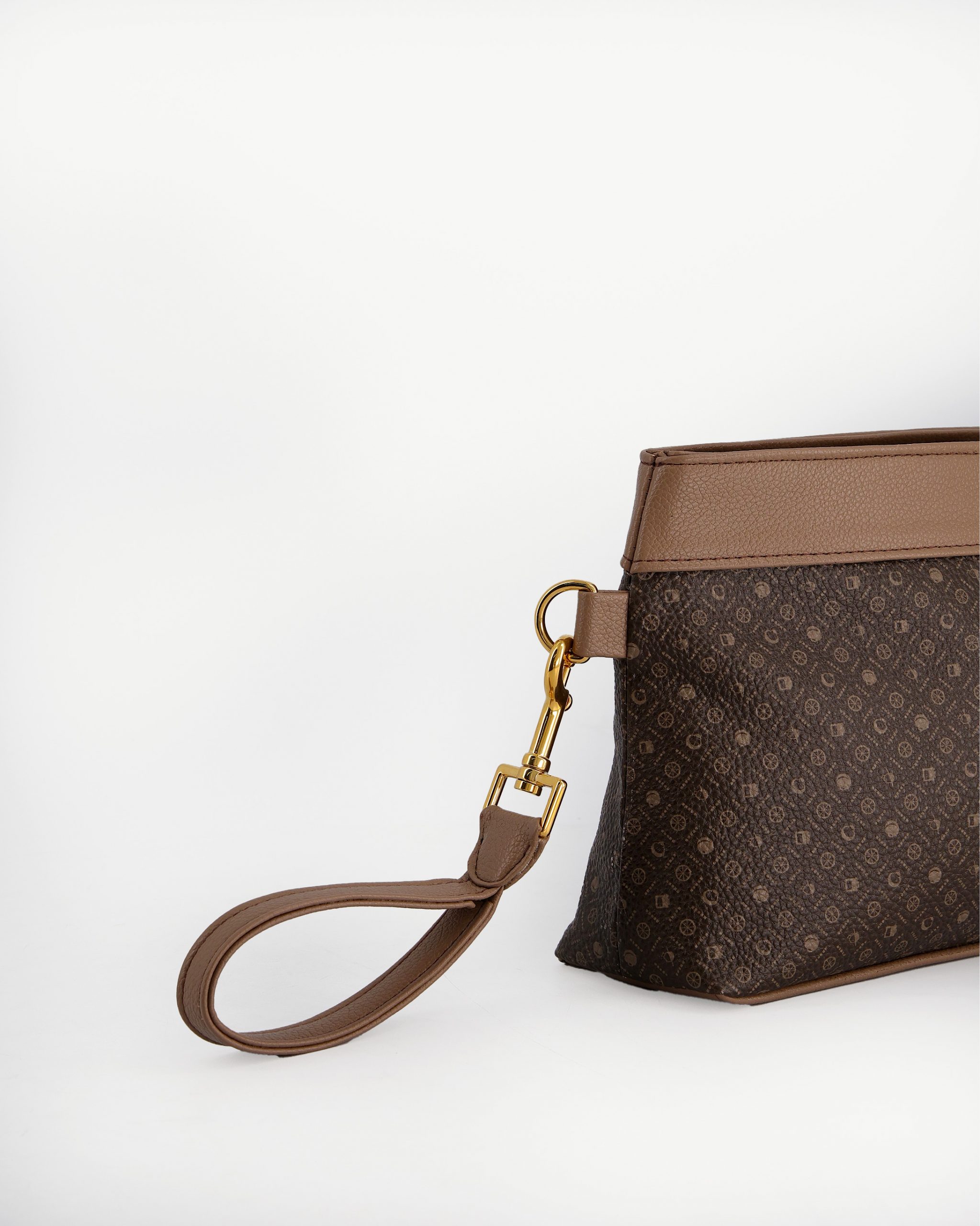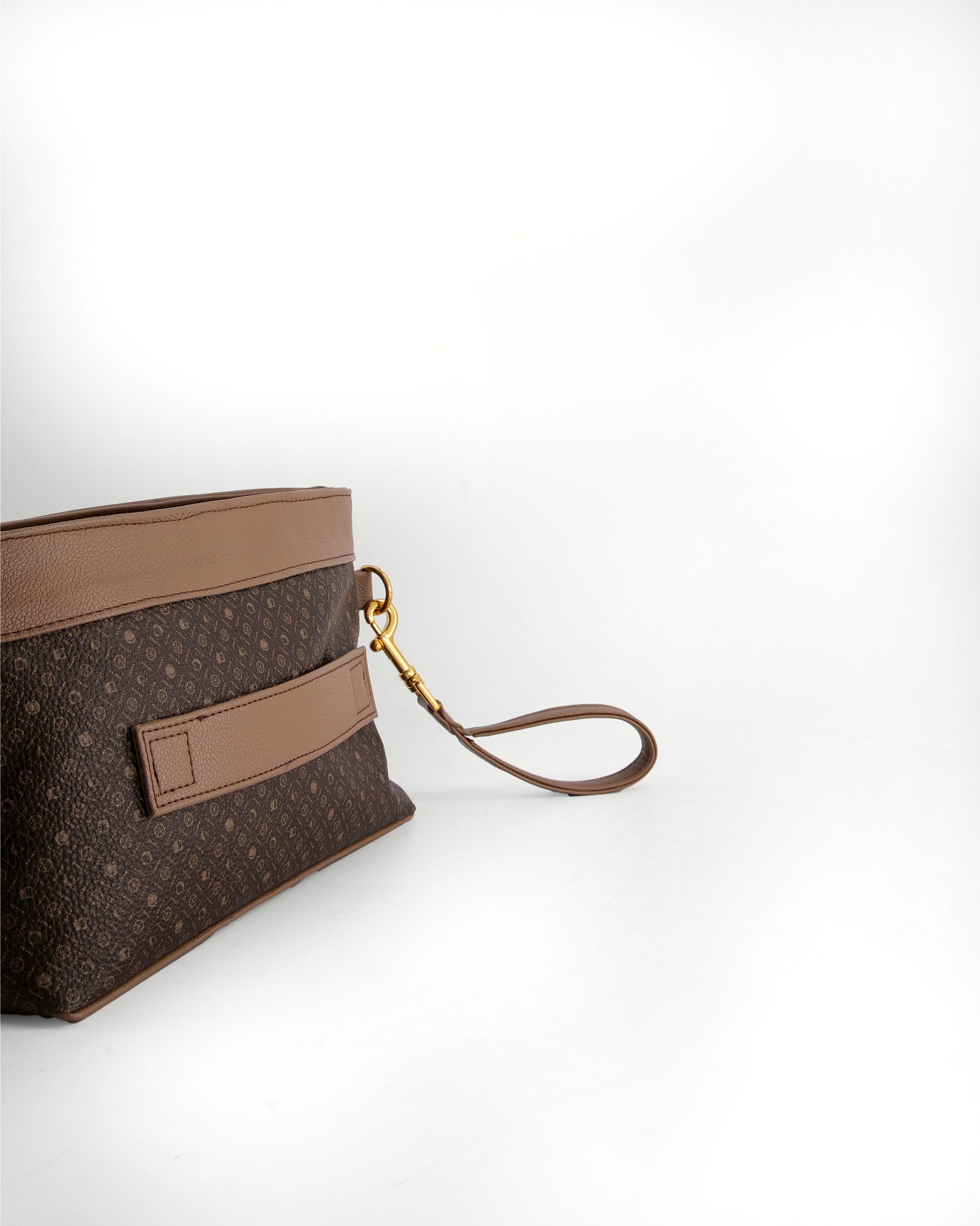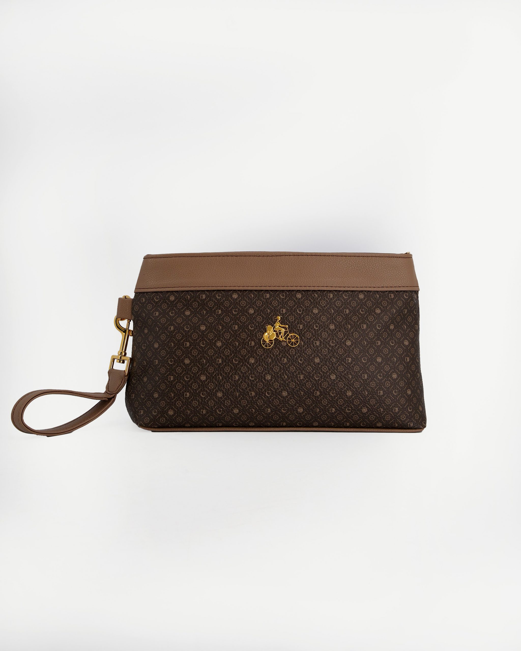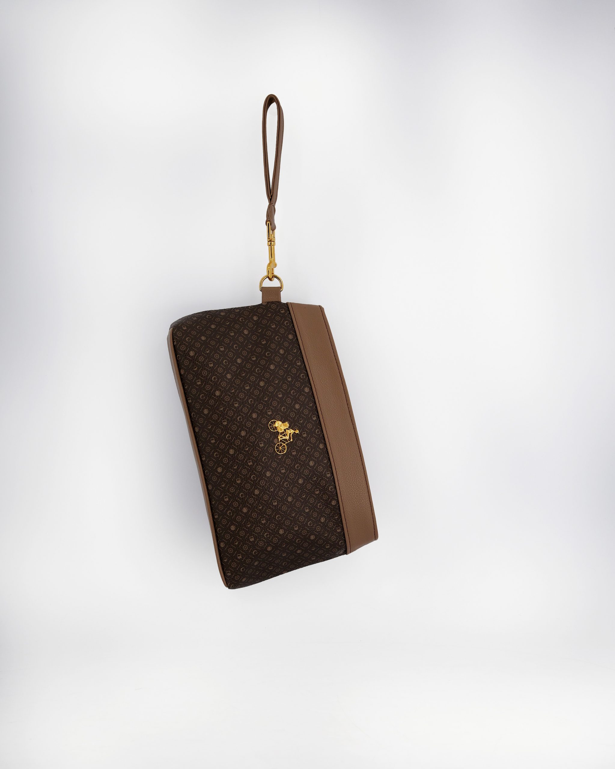 The DKWR 01 – Crafted in a rich brown monogram finish with smooth tan leather detailing, this piece blends classic style with modern convenience. The gold-tone bicycle emblem adds a subtle signature touch, while the detachable wrist strap makes it easy to grab and go, whether you’re stepping out for a quick errand, heading to an event, or travelling light.