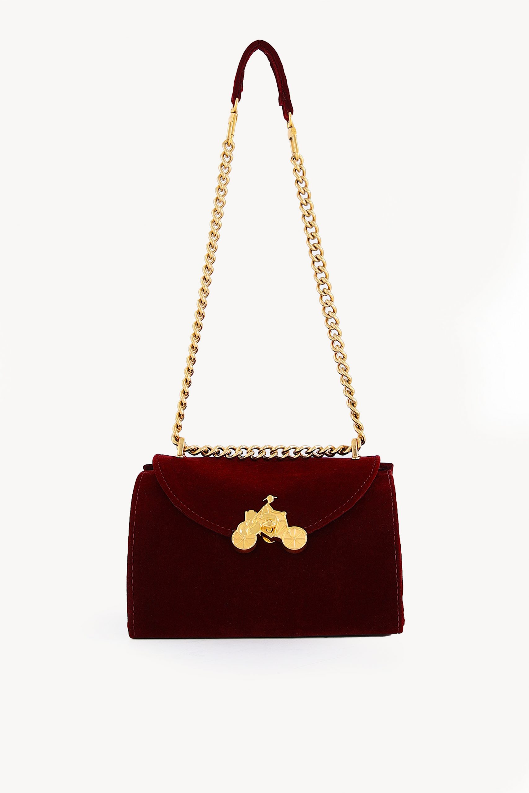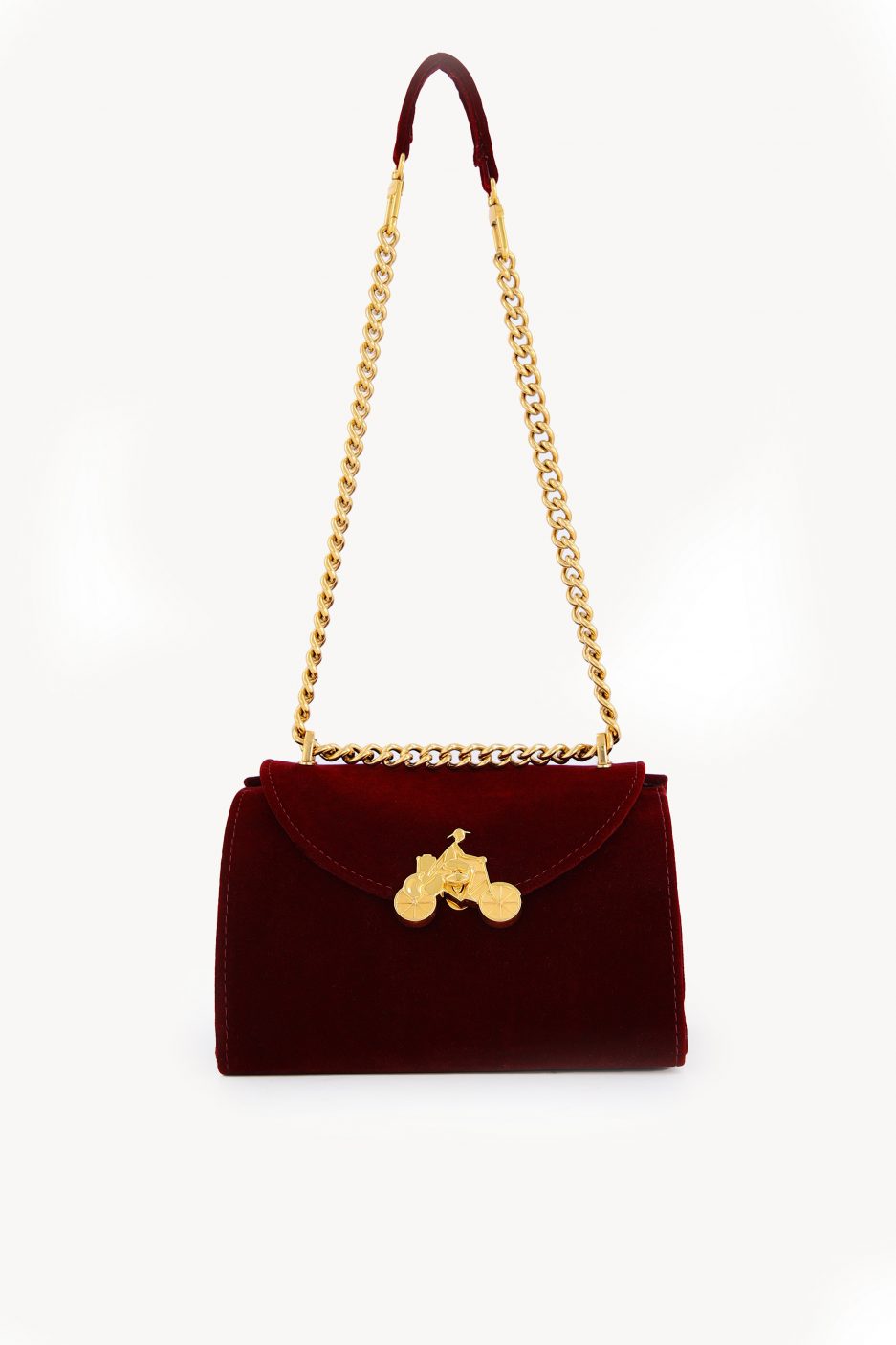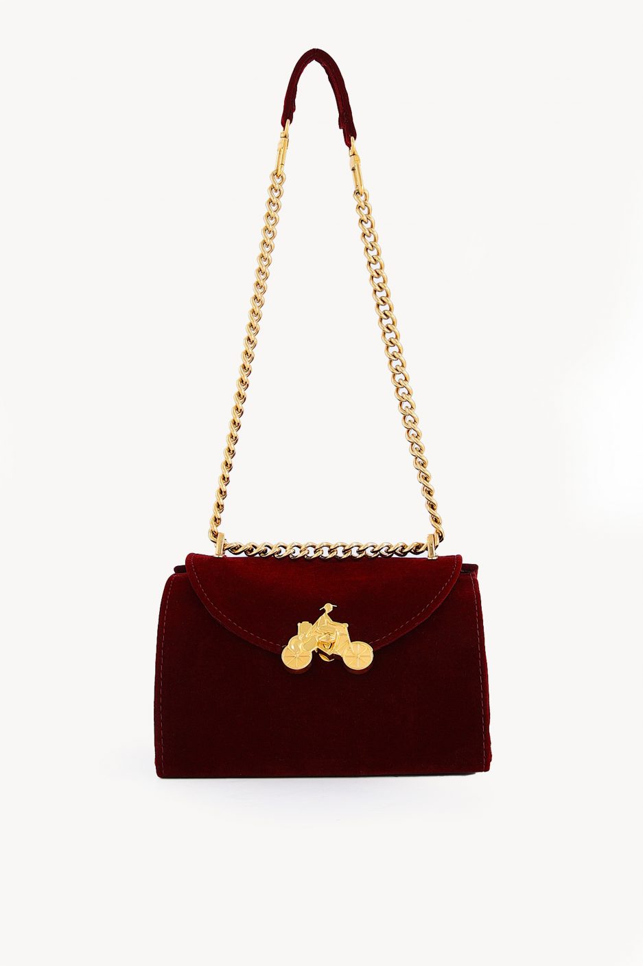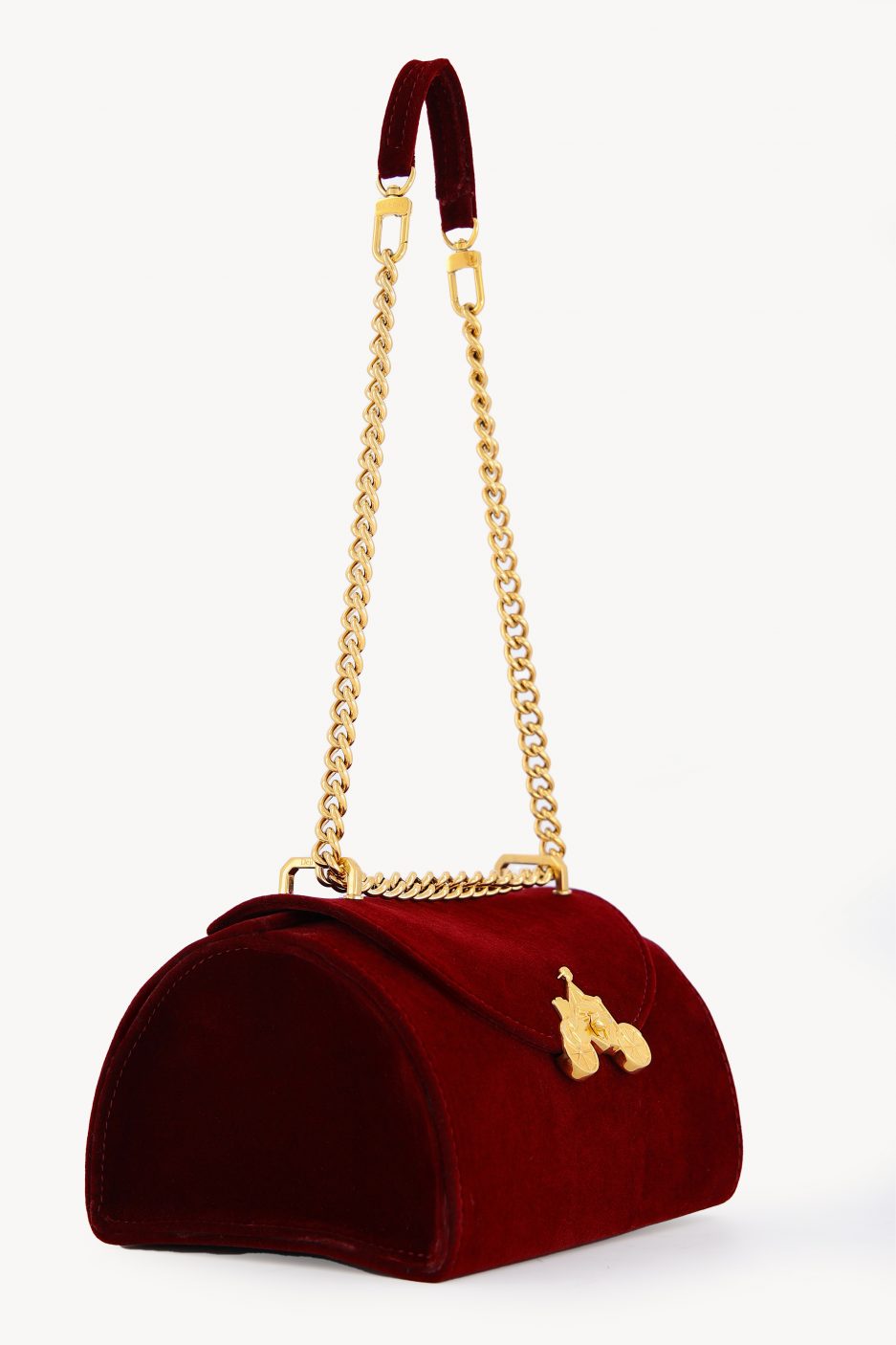 The DKSB–01 is a structured burgundy shoulder bag. Made from rich burgundy velvet, it feels plush and refined, with a shape that holds beautifully. The flap-top design keeps it sleek, while the gold-tone chain strap and signature Deji & Kola clasp add a polished touch. It’s the kind of bag that moves effortlessly from day to night, quietly confident, undeniably stylish.