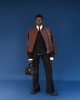 The DKJKT 05 is a biker jacket made from a shade of brown leather with a midweight feel. It features two straight zip closures at the front, eight snap buttons around the sleeves and body, and a minimal collar. The jacket is lined and includes an interior pocket for convenience.