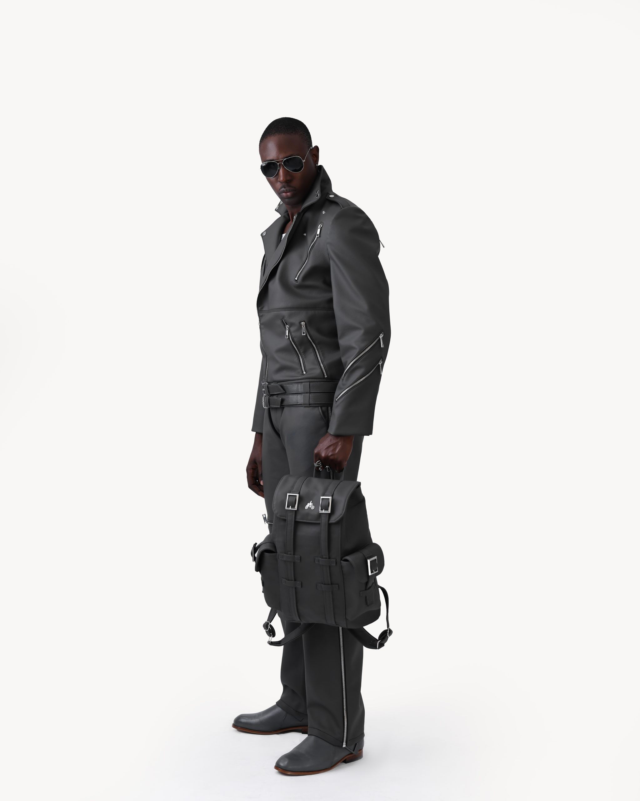 The UCS 3 – Leather Pants are crafted from smooth-finish charcoal grey leather, these trousers are defined by their polished silver-tone zippers. Designed as the perfect counterpart to our DKJKT 01 Jacket or as a statement piece on their own, they are ideal for a high-profile concert or any event where making an impression is non-negotiable.