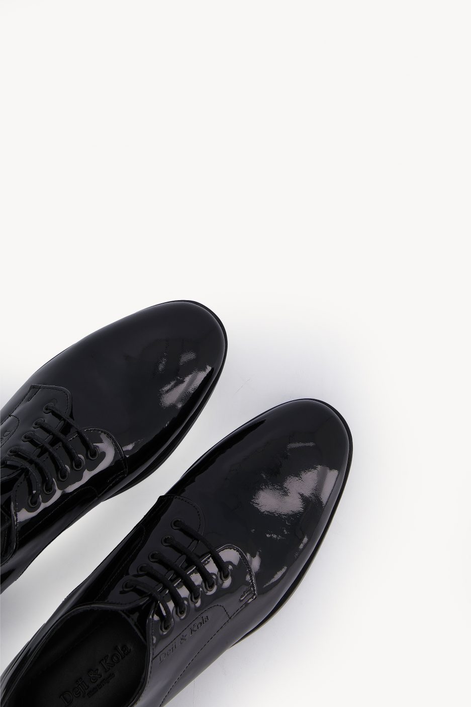 The DKDB 05 – Made from black patent leather with a classic, rounded toe and easy lace-up closure. The classic derby design and low heel make it easy to wear all day, perfect for semi-formal or fashion-forward events.