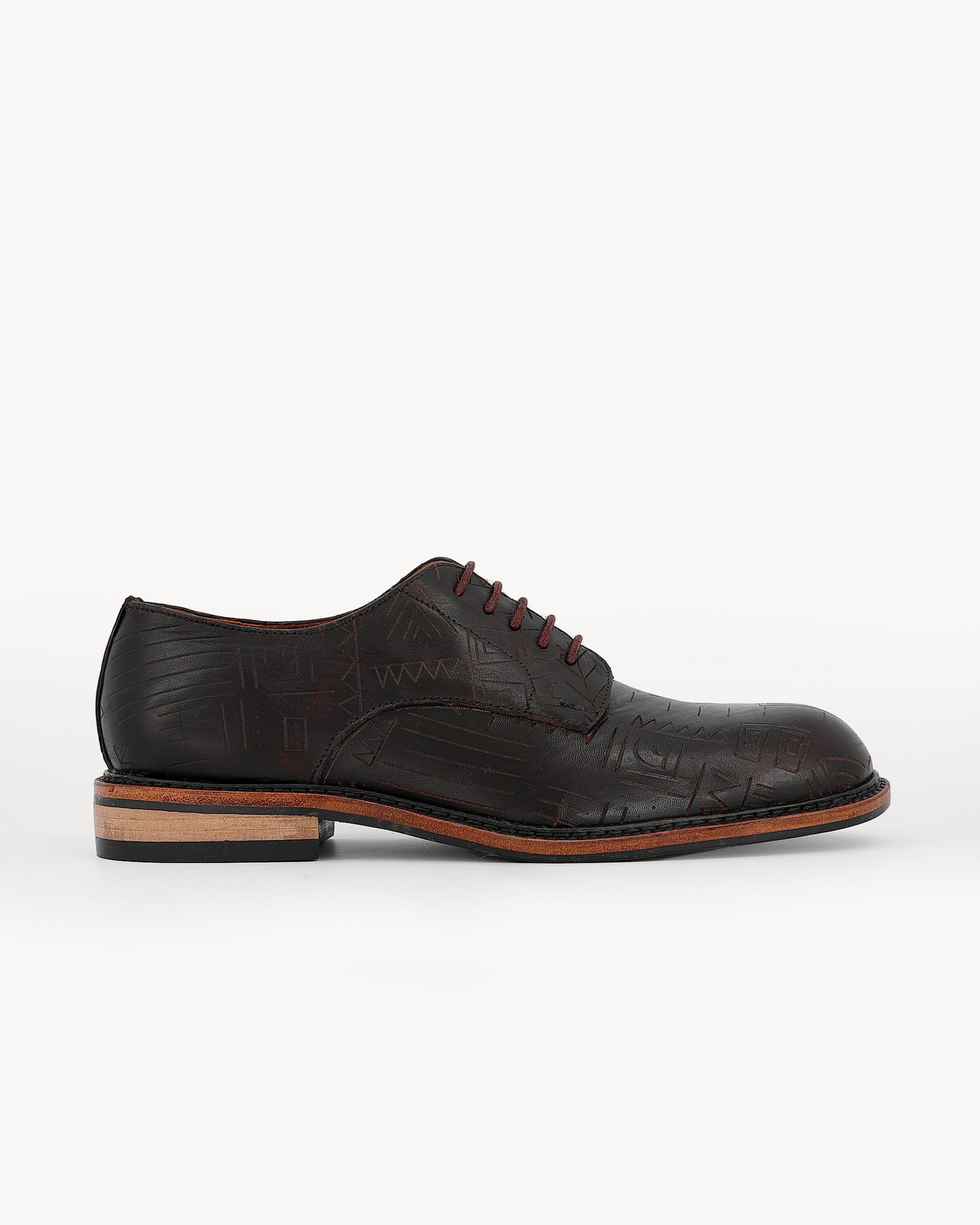 The DKDB 02 – Brown Leather Derby is handcrafted in Nigeria from smooth leather, featuring laser-cut engraved alkebulan patterns, open lacing, and a clean, rounded toe. Designed for comfort and durability, this versatile Derby transitions effortlessly from office to business meetings and formal occasions.