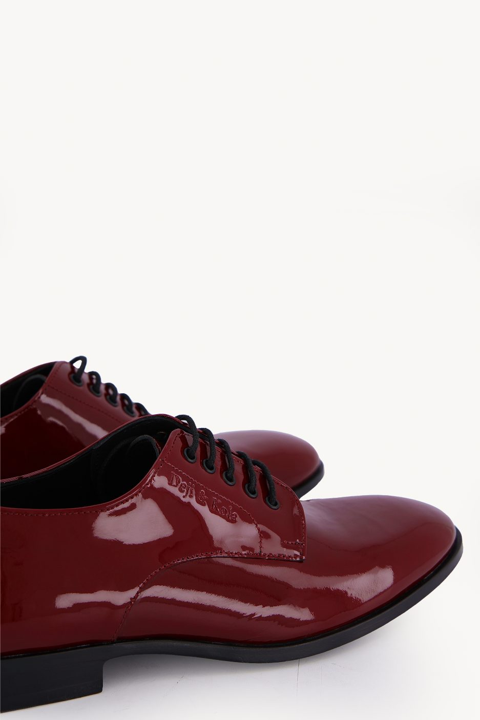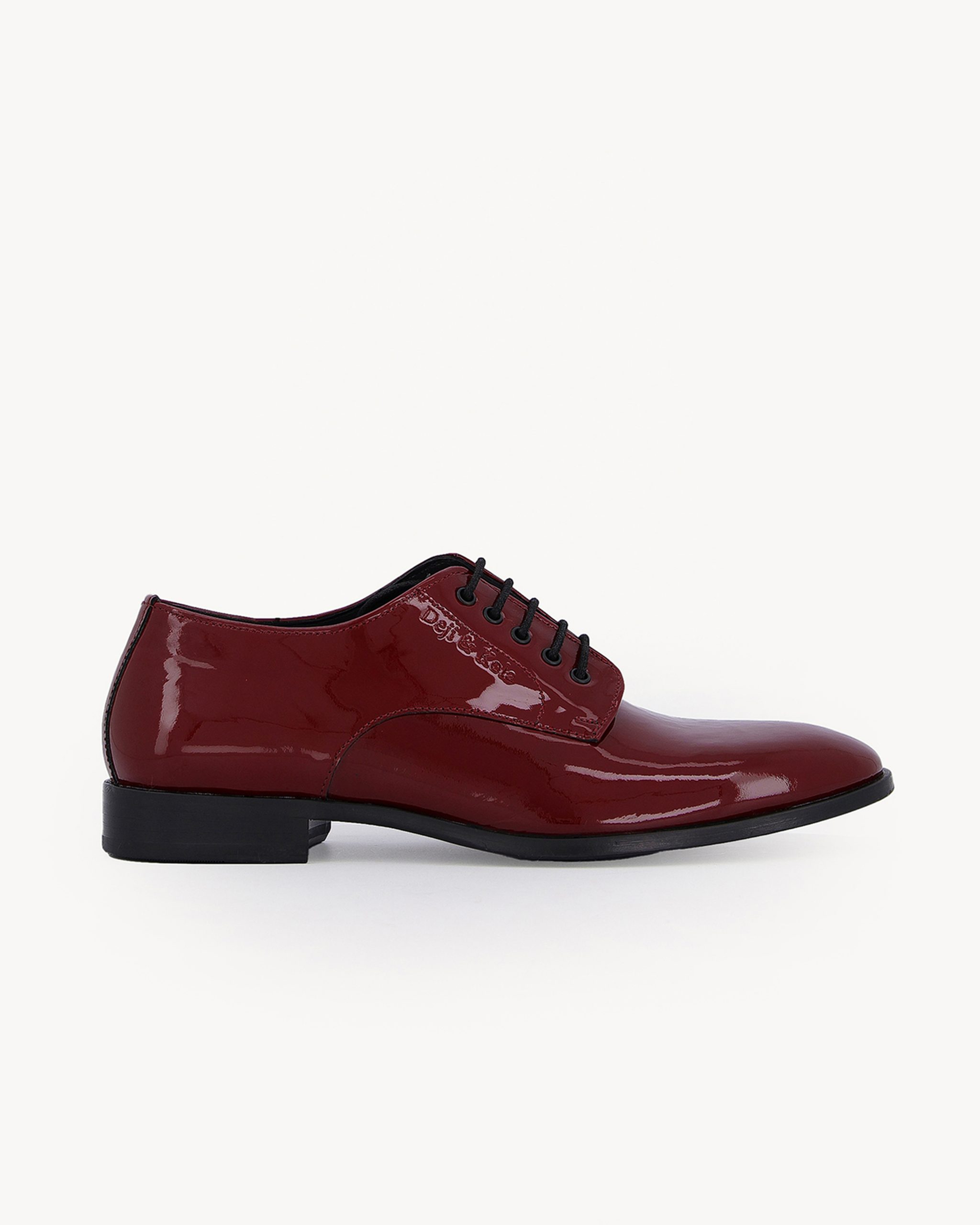 The DKDB 05 – Made from burgundy patent leather with a classic, rounded toe and easy lace-up closure. The classic derby design and low heel make it easy to wear all day, perfect for semi-formal or fashion-forward events.