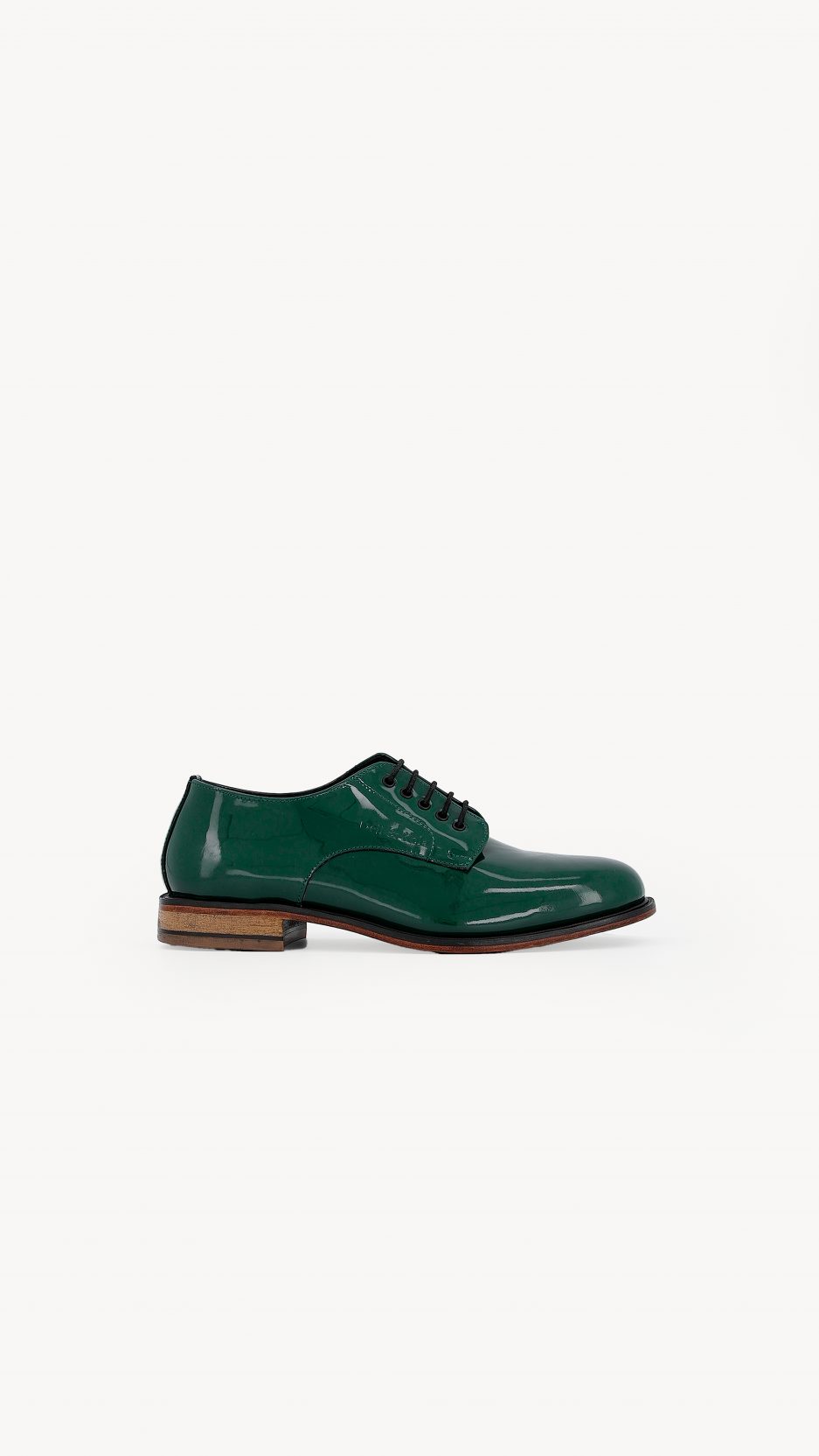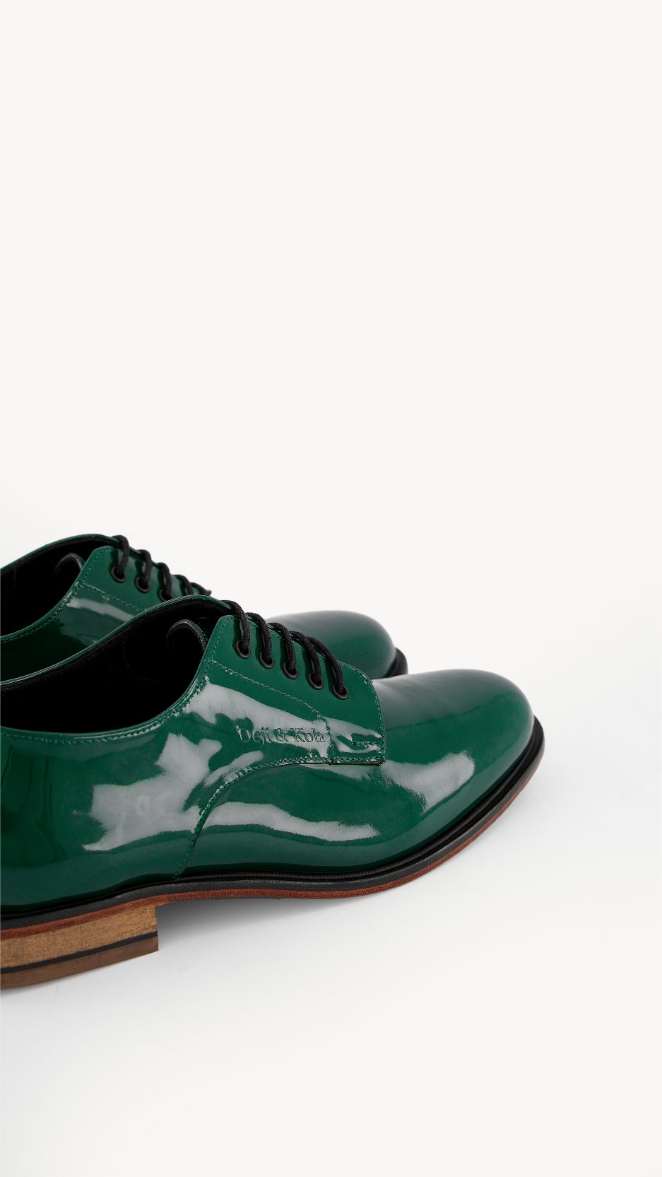 The DKDB 05 – Made from green patent leather with a classic rounded toe and easy lace-up closure. The classic derby design and low heel make it easy to wear all day, perfect for semi-formal or fashion-forward events.
