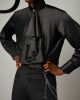 From the RATIO 50:60:90 collection, this black silk shirt is designed to stand out subtly. Crafted from smooth silk, it feels light and refined, while the layered front ruffle adds just the right amount of movement and detail. Finished with a structured high wing collar and a single silver Swarovski button, it’s bold, clean, and easy to wear.