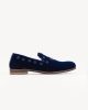 The DKLF 03 is a navy blue velvet loafer with a soft, comfortable feel. It’s detailed with blue ring accents and a Jet Hermite Swarovski stone.