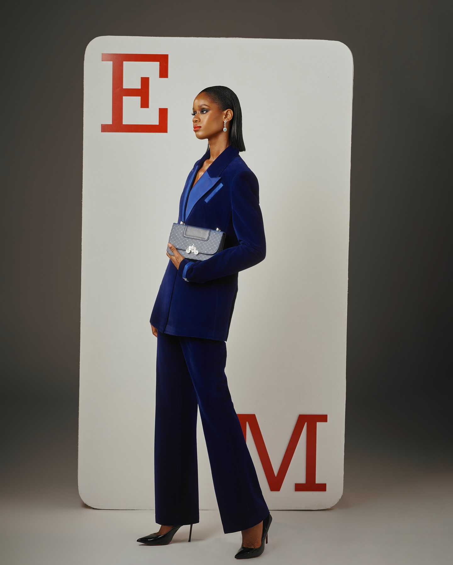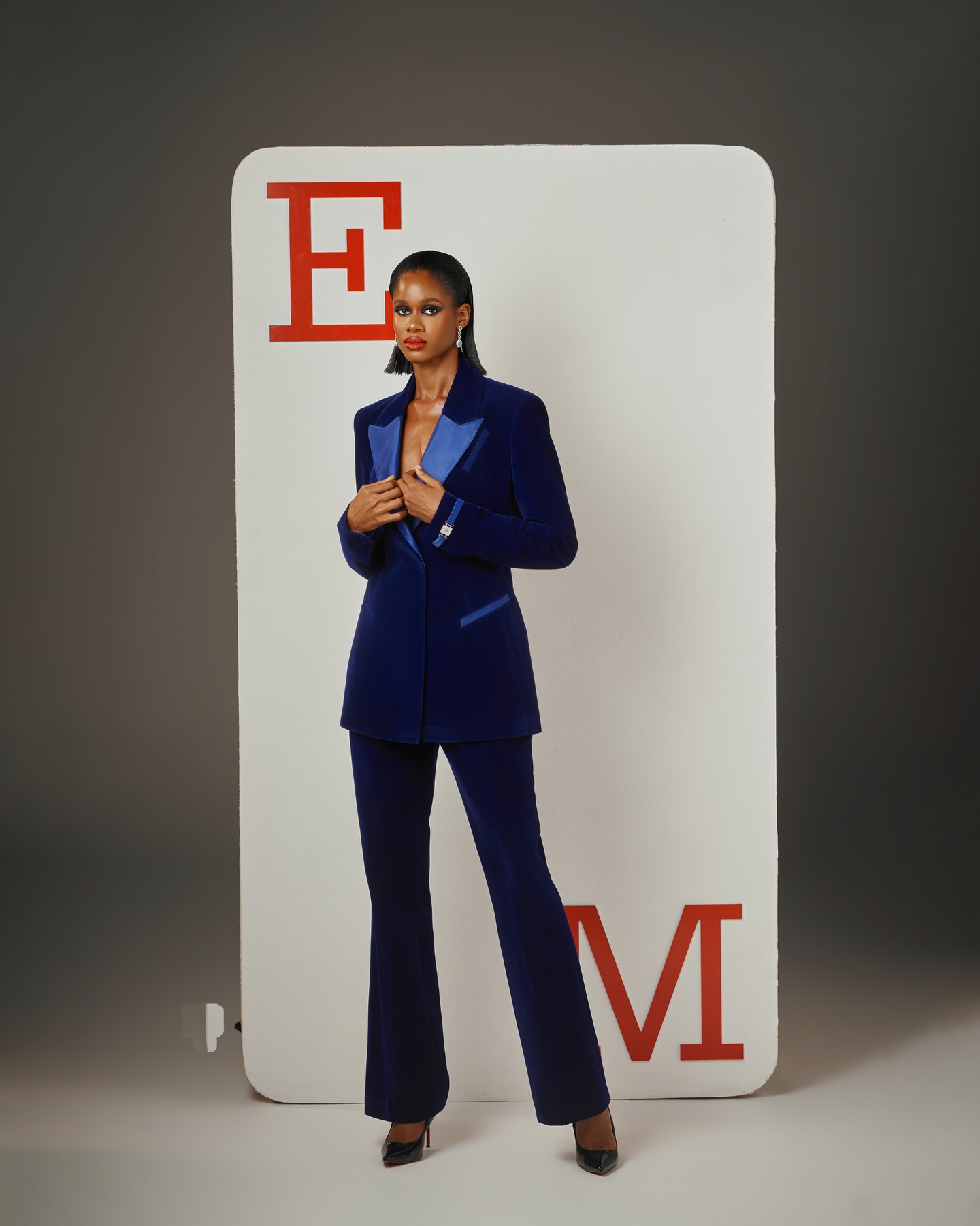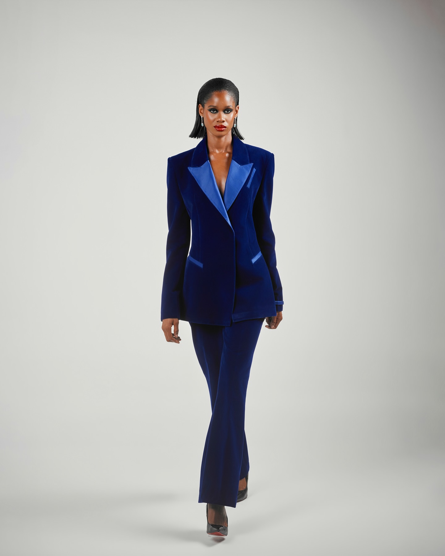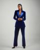 The “BYM” suit 2 is crafted from a navy blue velvet suit. The peak lapel, one-button jacket pairs perfectly with straight-cut trousers for a sleek, polished look. Ideal for evening events, parties, or any occasion where you want to make a confident impression.