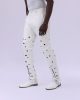 The UC2-LK4 leather Pant is White grained leather pants with a straight cut. The leather has a firm, textured feel and the stitching is neat for a clean finish. The inner lining makes it comfortable for long wear. Easy to pair with the jacket or wear on its own.