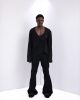The UC3-LK shirt is a charcoal black V-cut neck T-shirt detailed with a small metal badge on the chest. Designed for a relaxed fit and easy pairing with denim or trousers.