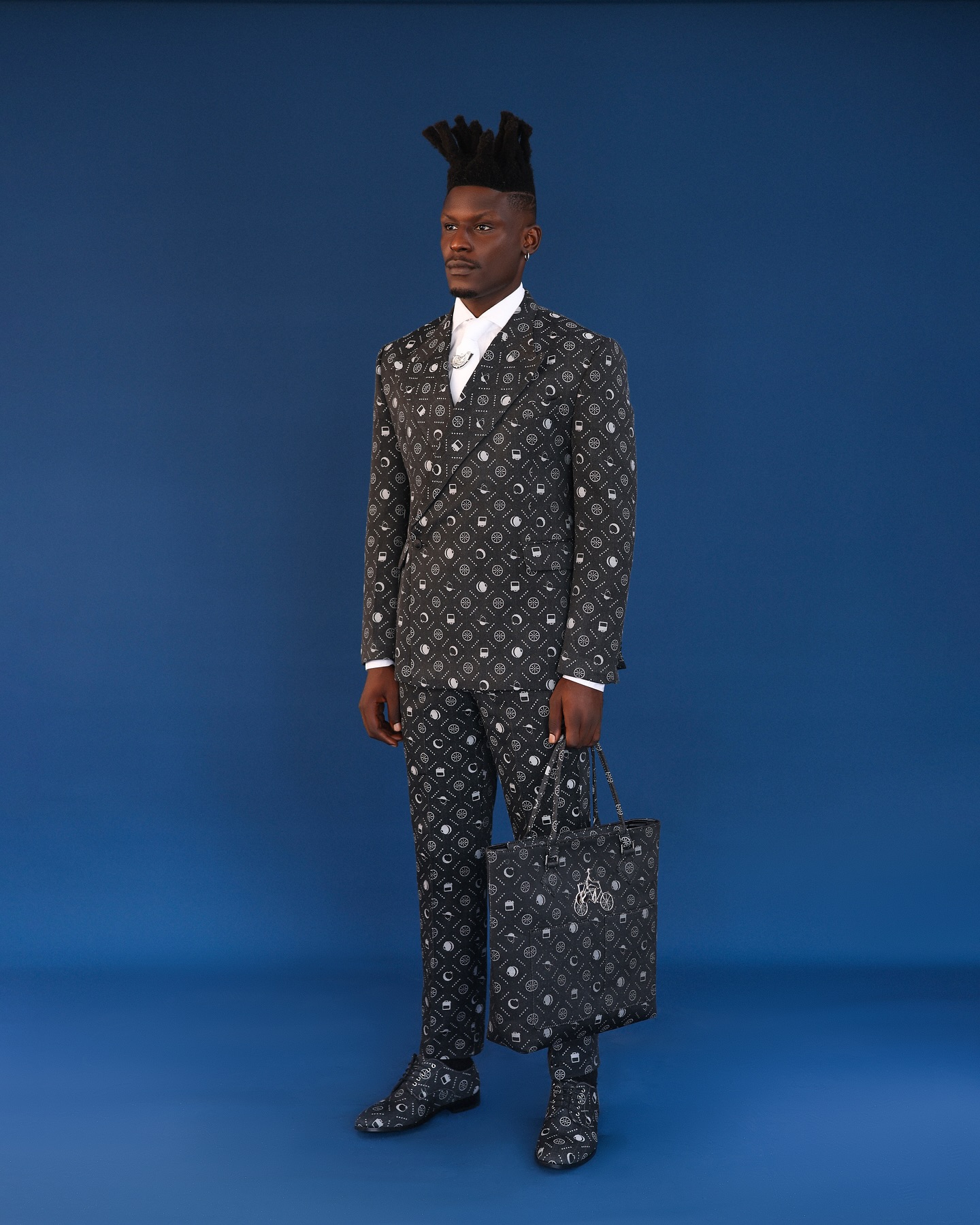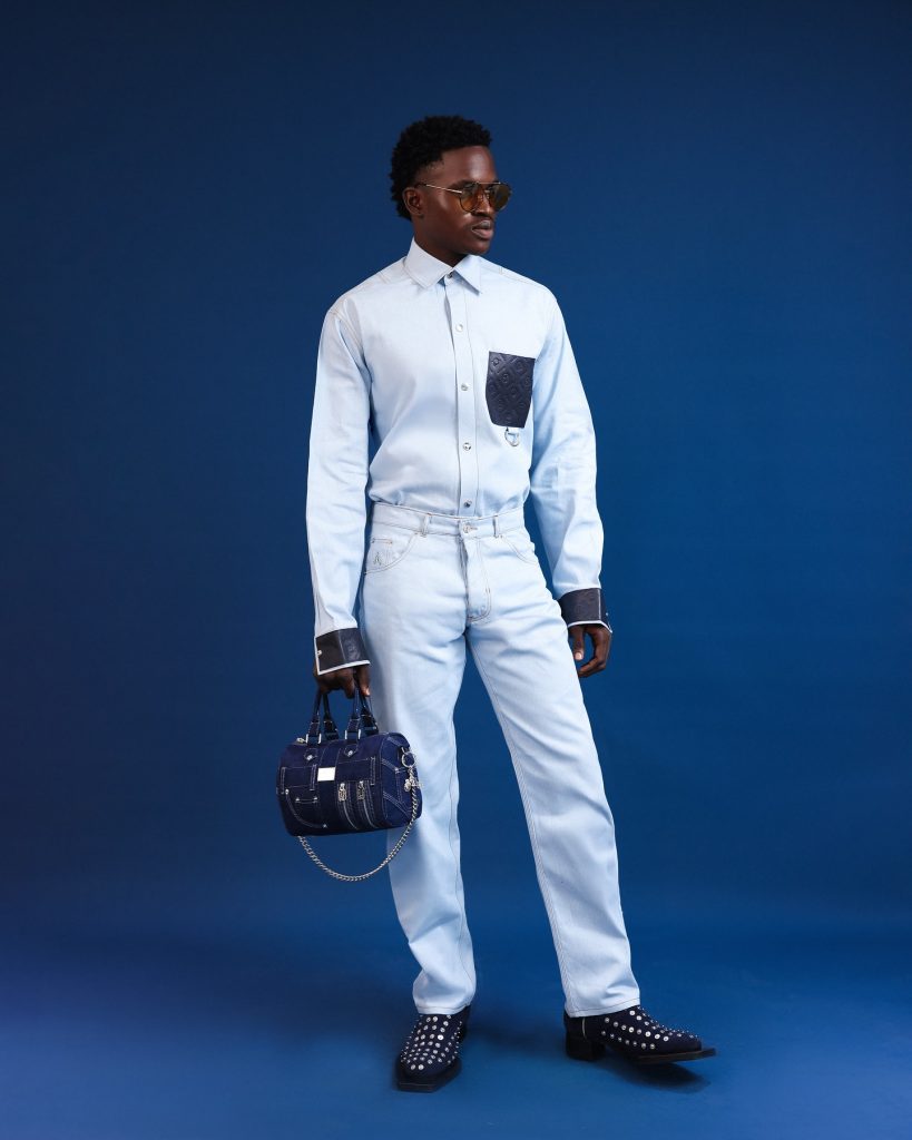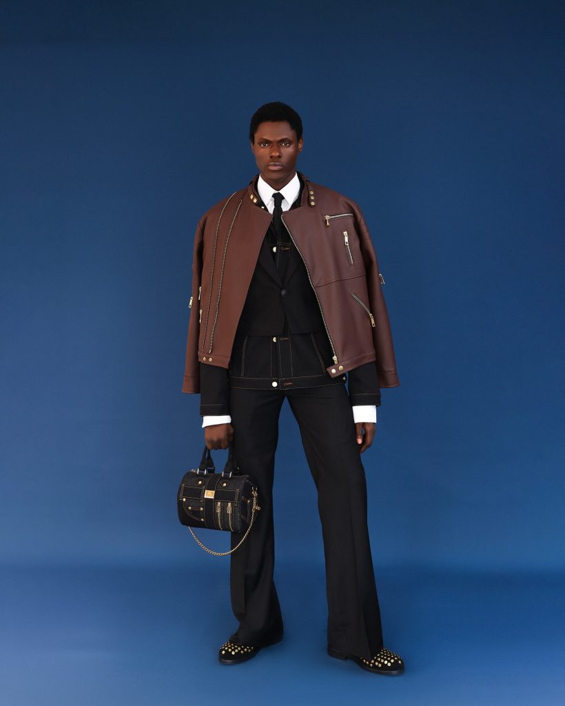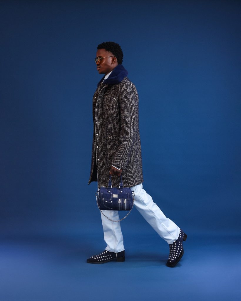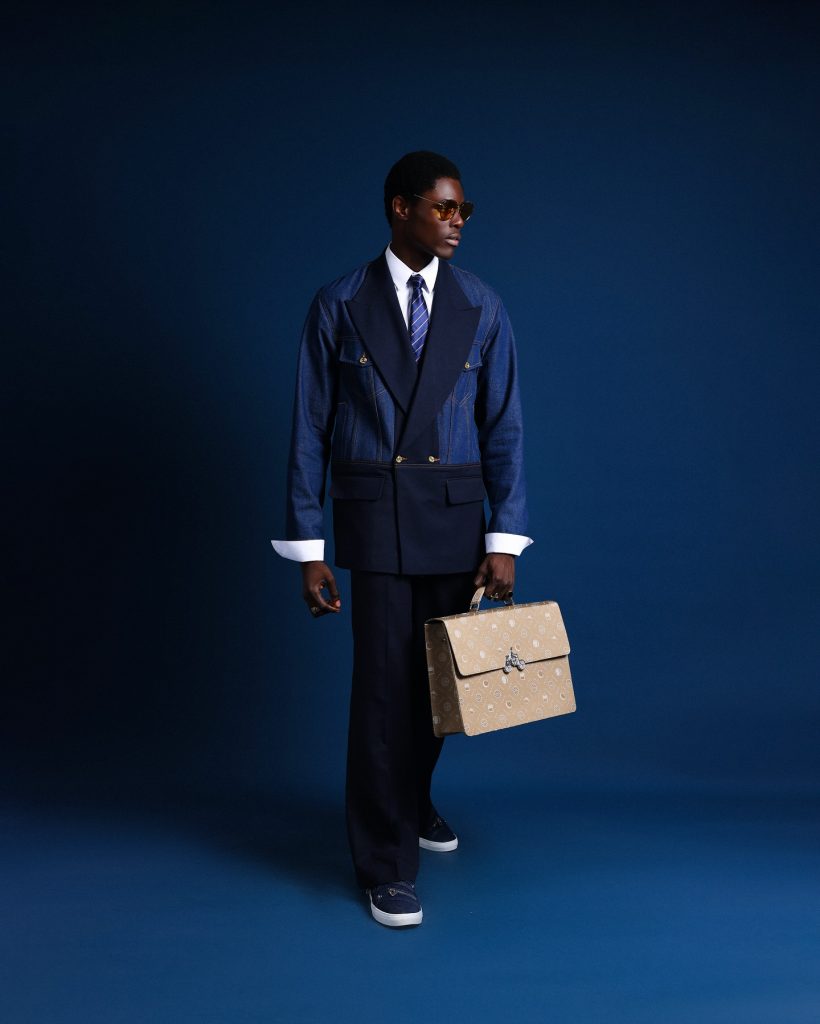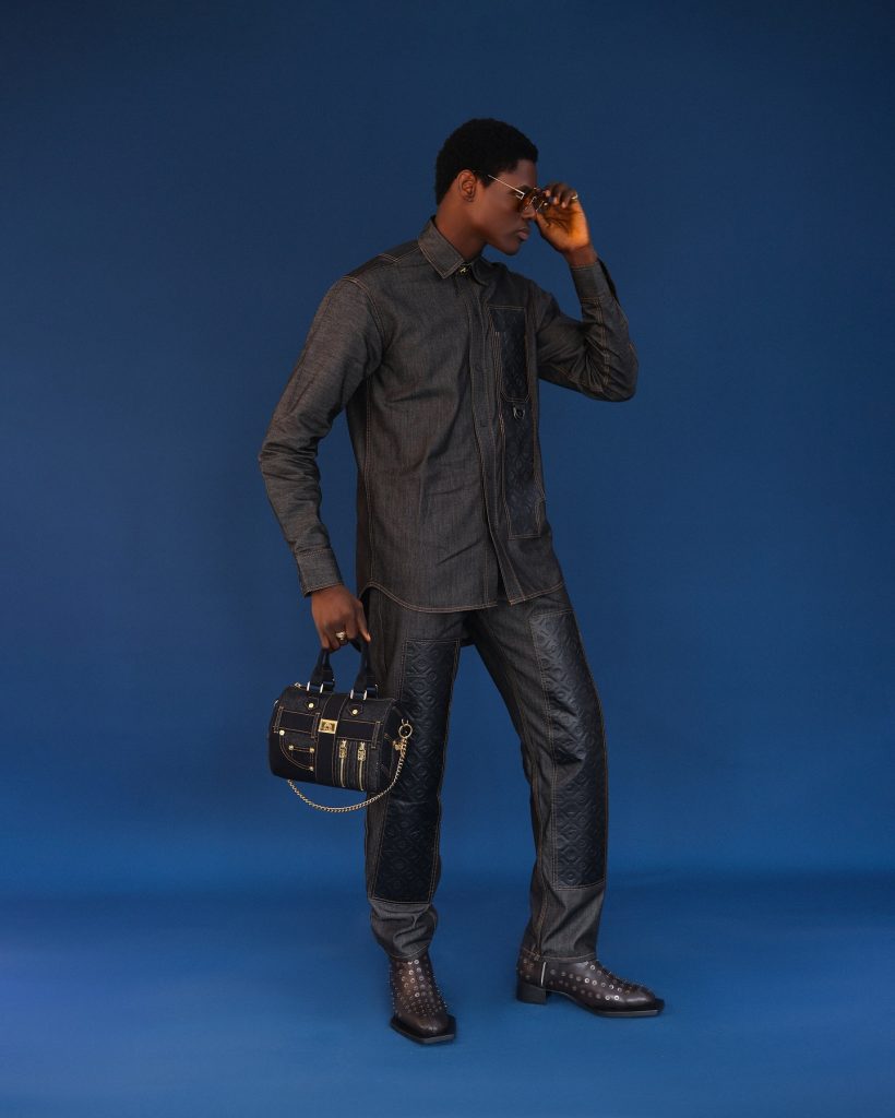 From denim shirts to monogram suits, two-piece sets, jackets, shoes, bags in duffle & briefcases. It also featured flared trousers and embossed leather accents, the collection reflects the range of our design direction.